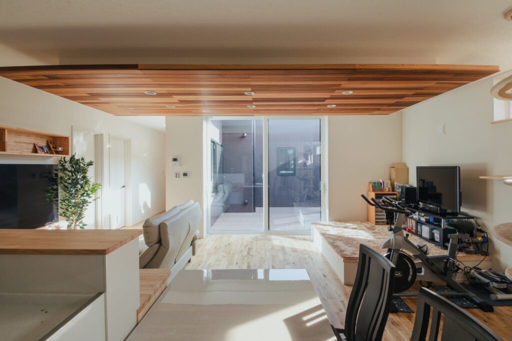 中庭は外からの視線を遮り家族とのじかんを