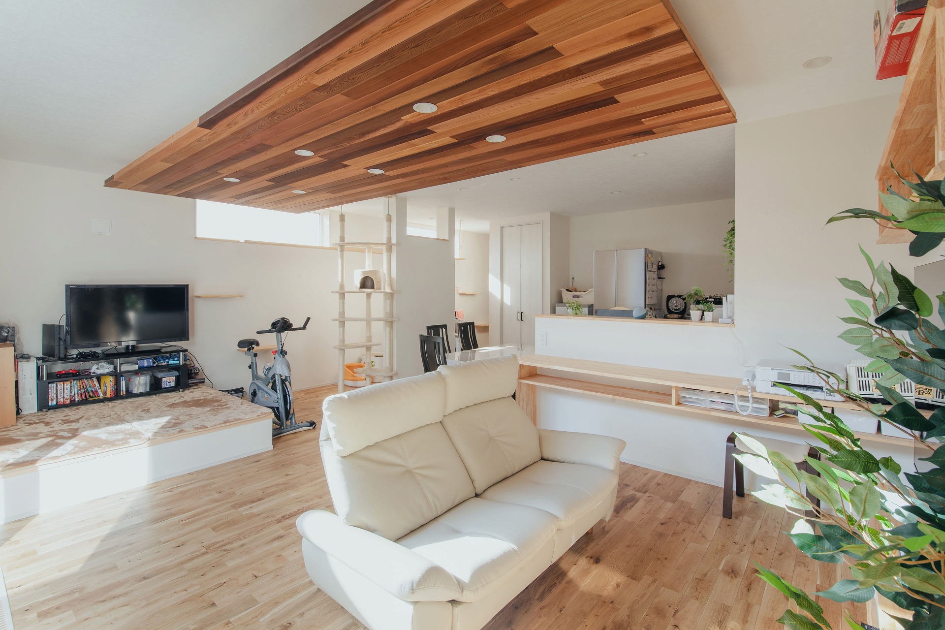 下がり天井はデザイン性だけではなく、猫のお散歩コース。